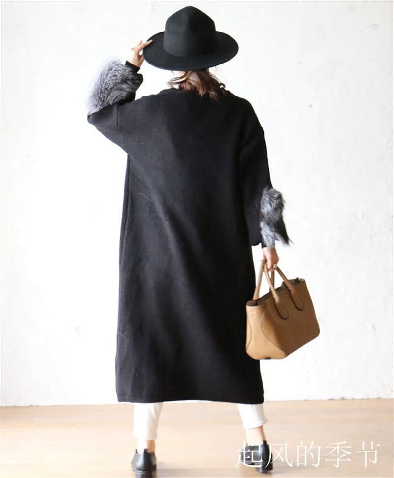 (fwcotb-V0051) ファーポイントのロングカーディガン トレンド シンプル 袖口 ファー ロング丈 カーディガン スタイリッシュ 秋冬 ワンサイズ | 2019新作ドレス★onlythebestオンリーザベスト