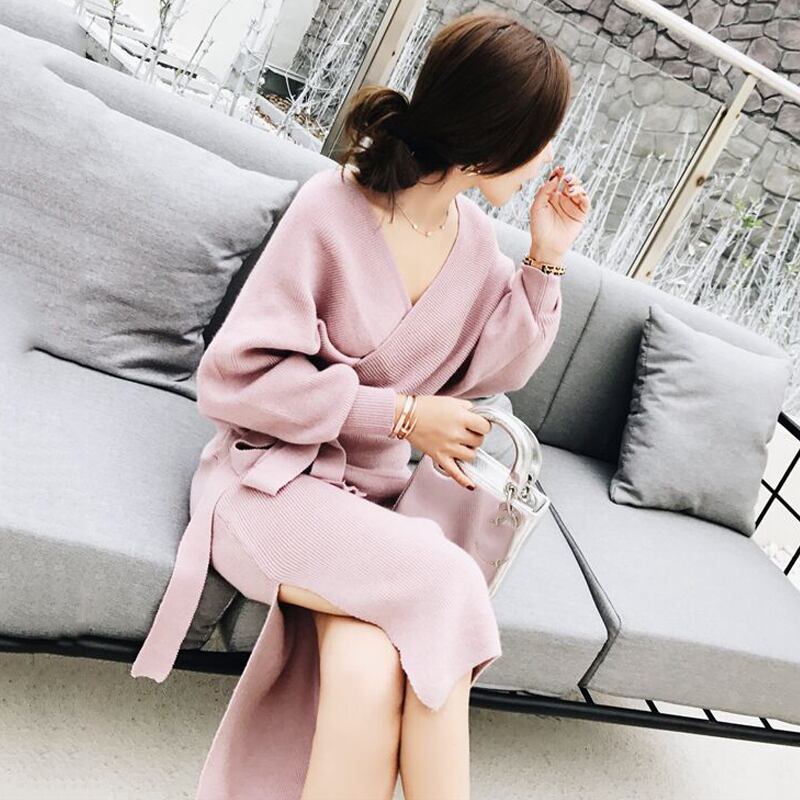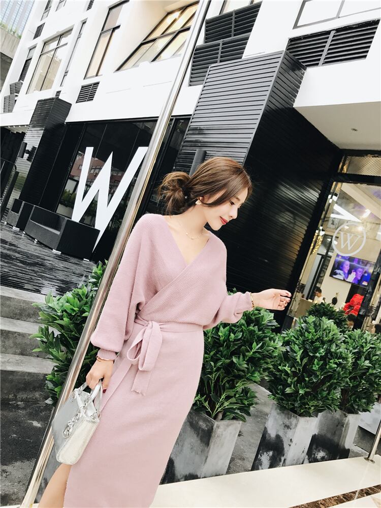 (nitoneb-V0004) 大人可愛い フェミニン 上品 清楚 ミディ丈 カシュクール リボンベルト Vネックニットワンピース デート イベント パーティー | 2019新作ドレス★onlythebestオンリーザベスト