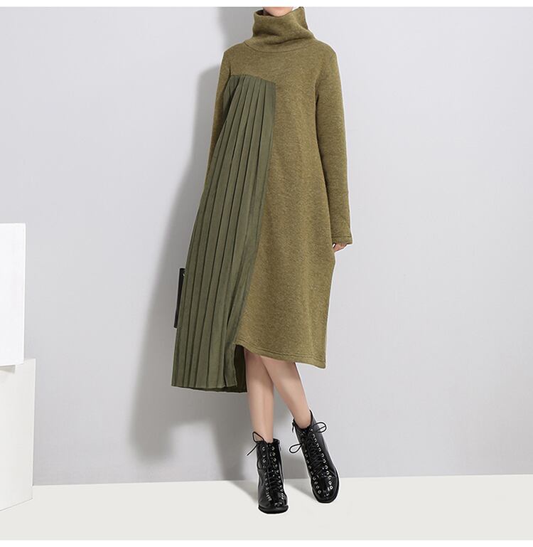 ゆったりとしたニットワンピースに、綺麗なアコーディオンプリーツを組み合わせた遊び心の効いたデザインでイマドキ感溢れる一枚!