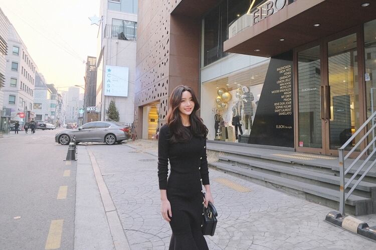 クルーネック タイト 長袖 無地 ロング エレガントスタイル マーメイド