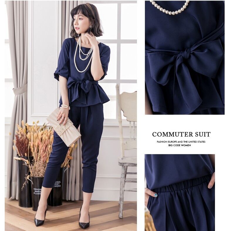 #通勤#結婚式#二次会#パーティー#披露宴#デート#九分丈パンツ#体型カバー#セットアップ#脚長効果#リボン
