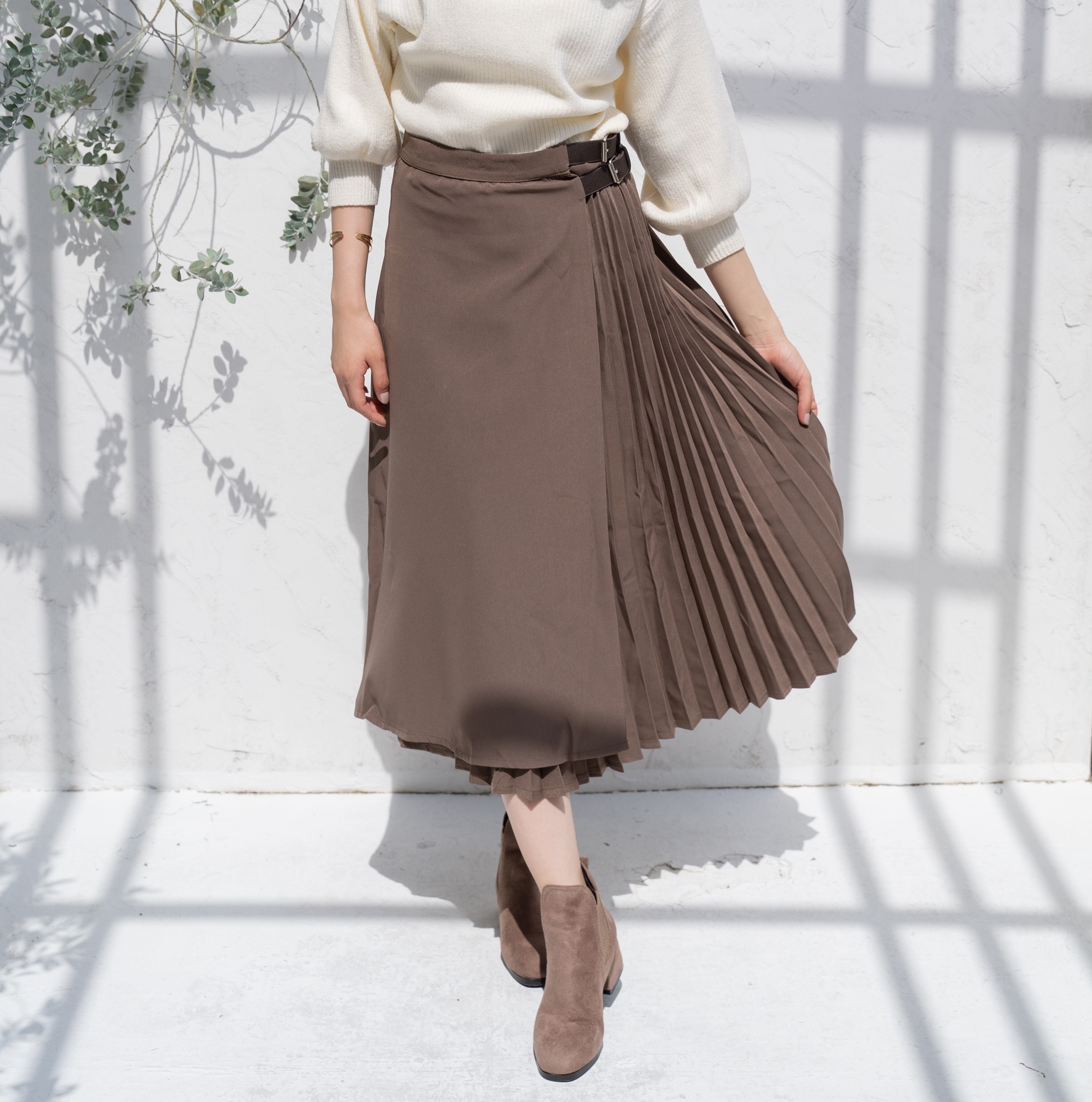 異素材切り替え スカート プリーツスカート 春秋 レディース カジュアル スタイリッシュ ロングスカート ロング丈 ミモレ丈 長め丈 スカート 上品 フェミニン こなれ感 着回し抜群 ブラウン ネイビー(srn-7) | 2019新作ドレス★onlythebestオンリーザベスト